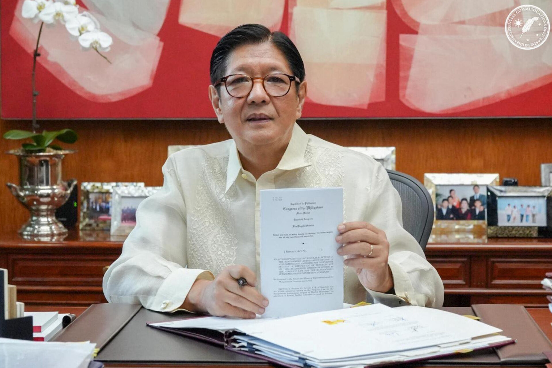 President Ferdinand Marcos signed Republic Act No. 12317, which resets the first regular parliamentary elections in the Bangsamoro Autonomous Region in Muslim Mindanao (BARMM) to September 2026.