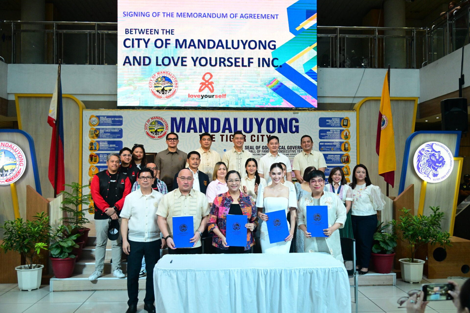The agreement was signed on November 3, attended by Mayor Menchie Abalos, Vice Mayor Anthony Suva, LoveYourself officials, and City Health Department head Dr. Arnold Abalos.